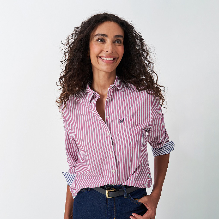 A relaxed shirt is the true hero of any workwear wardrobe. Here's why: it's lightweight enough to keep you cool, easy to layer on chiller days, and keeps you looking polished without trying too hard. Instead of the usual white, why not upgrade to a pink-striped option? Our poplin shirt is made from cotton, and we've added a pocket at the chest for added detail. Wear it with jeans, layer it under an off-white chunky knit, and to make a real style statement, add a pair of silver chunky loafers.