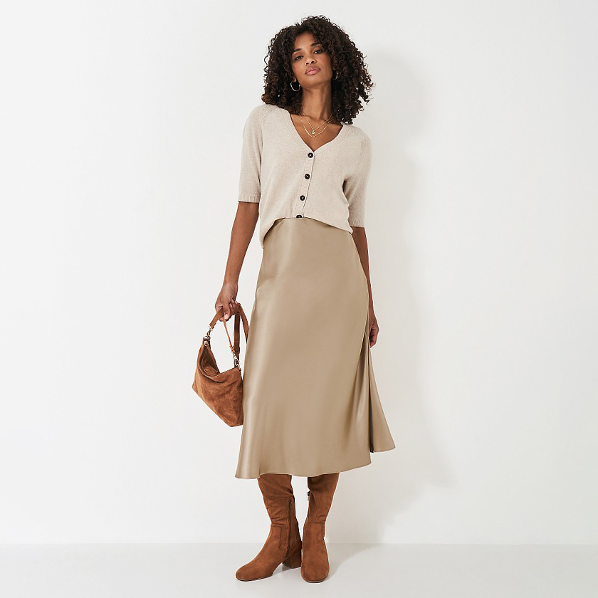 Look no further than our Rowen slip skirt. Its sumptuous, smooth texture feels dressier than jeans but remains versatile enough to be dressed up or down with minimal effort for maximum impact. We love pairing ours with knits, jackets, and boots in similar shades and different textures for a tonal dressing look. Think soft oatmeal, tans, neutrals and suede — it's the ultimate way to refresh your wardrobe this season.