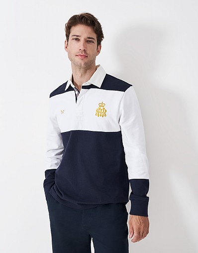 Henley Cut and Sew Rugby Shirt in Navy and White