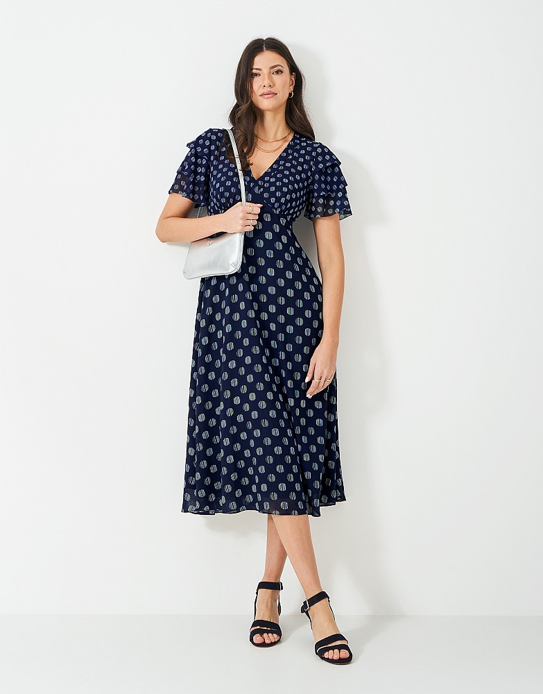 Henley Flutter Sleeve Dress in Polka Dots