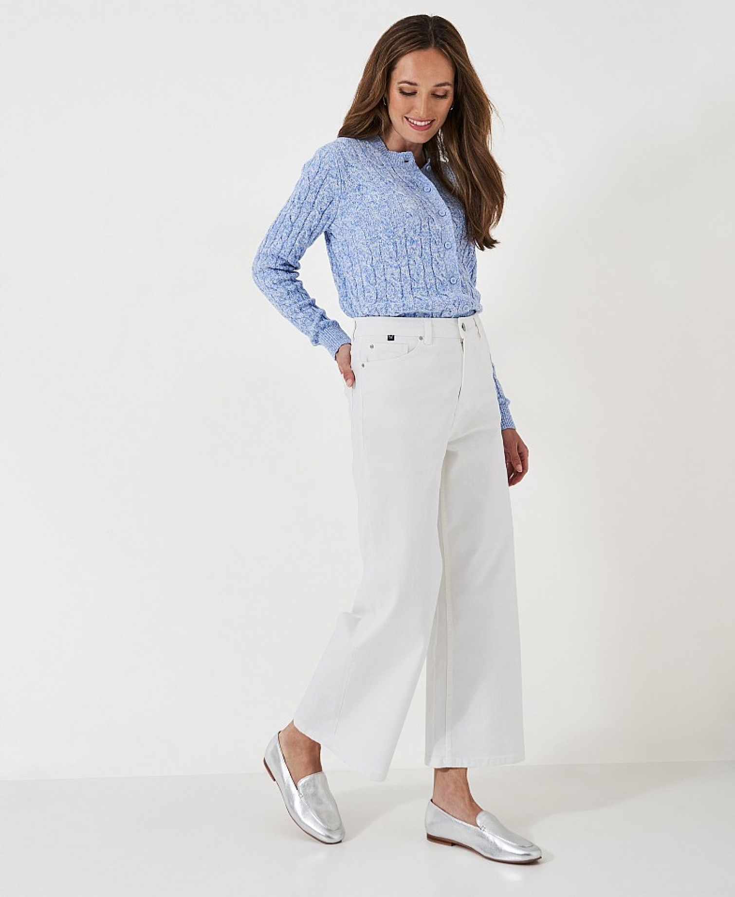 Next up on our list, and arguably the most essential item in the transitional outfit formula, are trousers. A well-chosen pair can anchor any outfit. Whether its tailored full-length styles paired with a Breton top or a boxy blazer for a polished office look, or white cropped jeans styled with a tee, a cosy knit, and metallic pumps for more of a laid-back vibe.