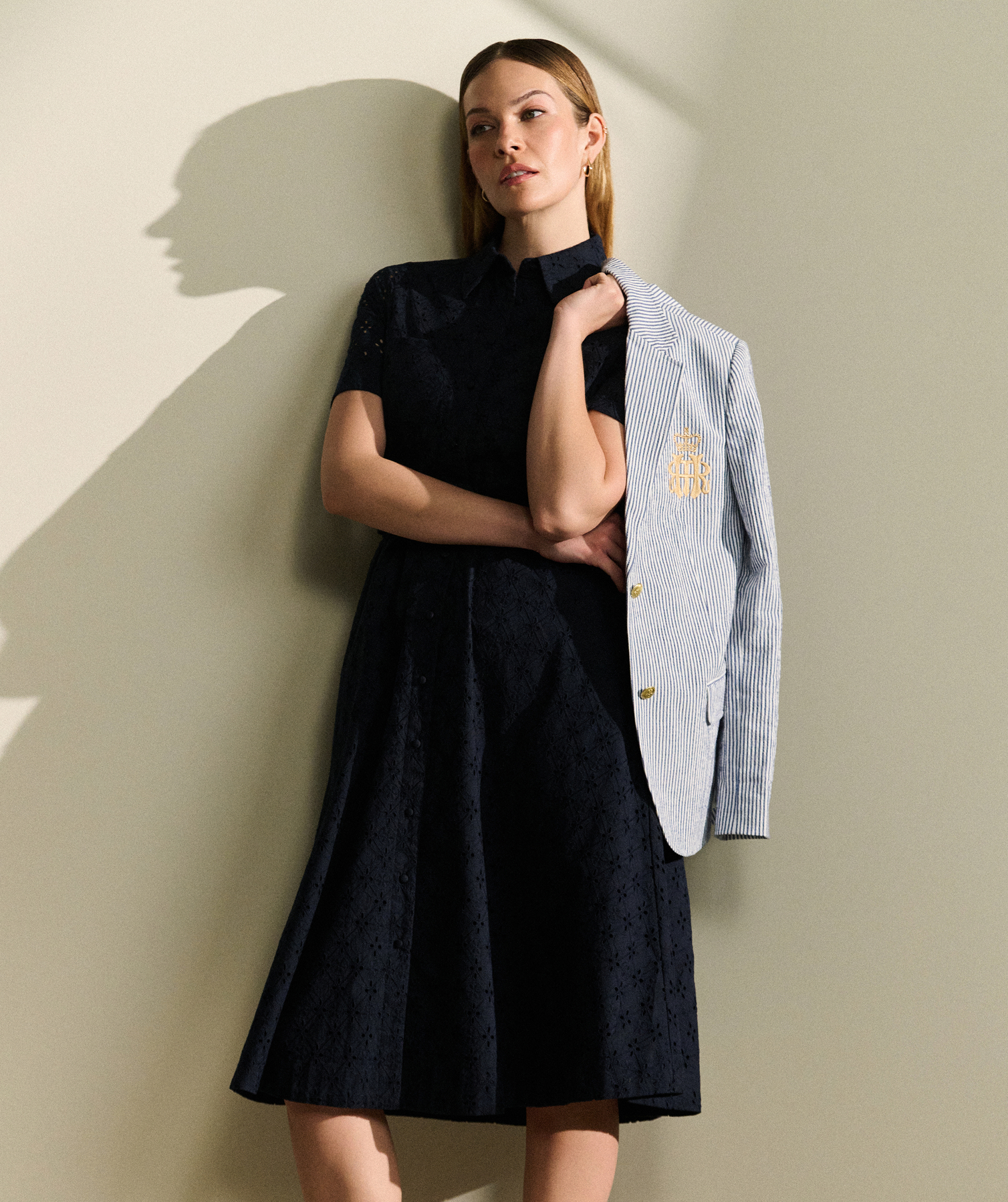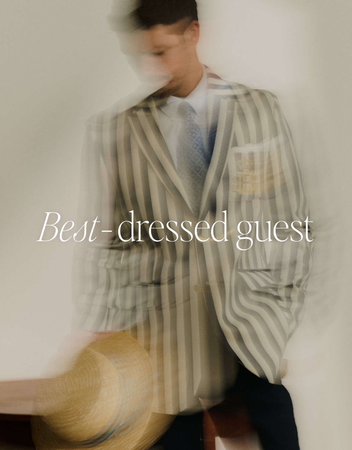 Nothing says Henley Royal Regatta quite like a blazer. The classic tailoring and embroidered crest on the pocket all nod to the varsity influence of the prestigious spectacle. Smart chinos are a must, and with complementary accessories for him, you’ll head straight to the top of the best-dressed list.