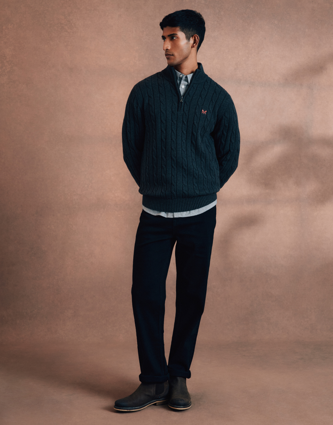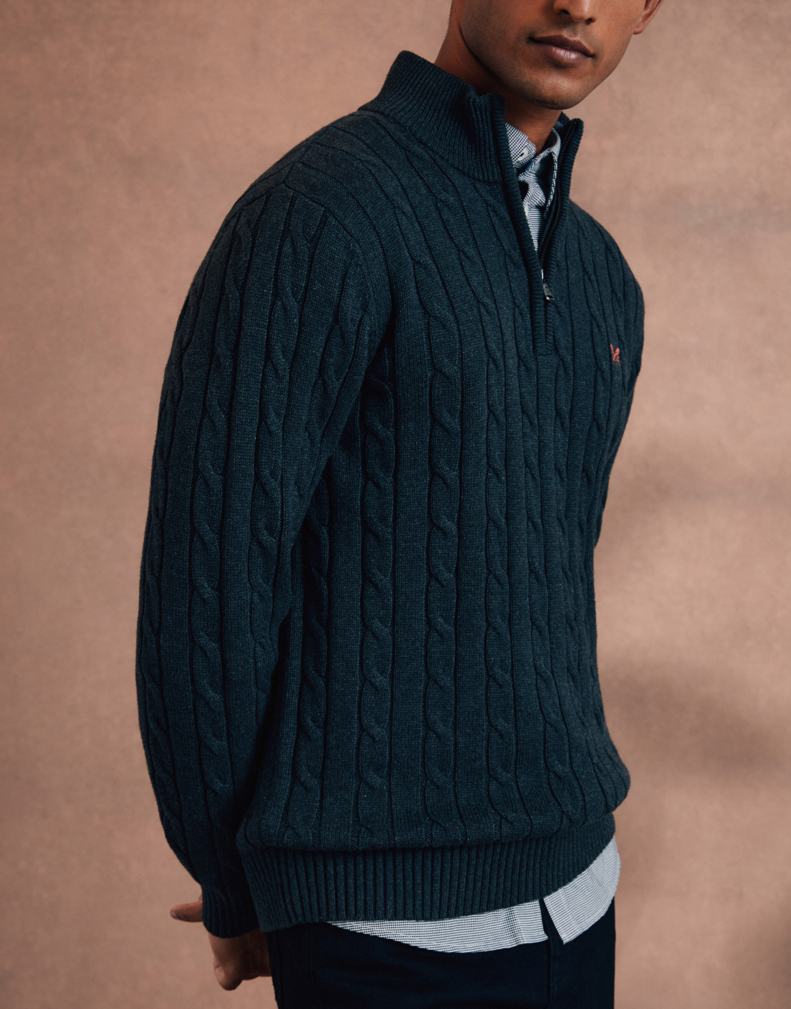 Every wardrobe needs a timeless half-zip knit that layers effortlessly over anything. Good news: we've got just the selection. Ours are great versatile pieces for autumn and beyond. Not only do they look good, but they feel good too. Our Oarsman half-knit zip is made from organic cotton with a classic cable stitch design. Styling-wise, we recommend layering over shirts for a refined yet relaxed look.