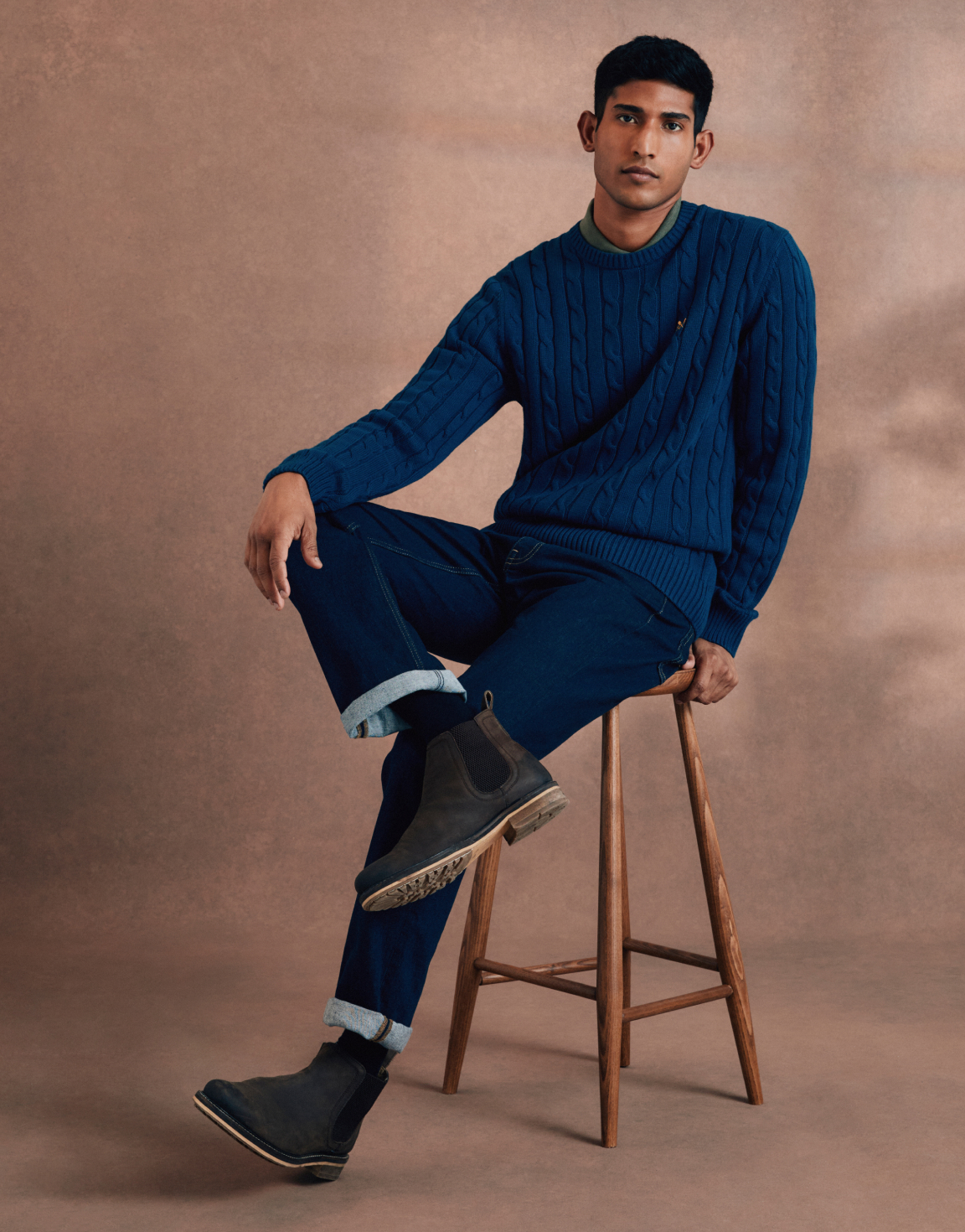 You can't beat a cable knit. Chunky, cosy, and comfortable in equal measure, it's the go-to piece you'll reach for time and time again. Our Oarsman cable jumper is a timeless classic. It's crafted from soft organic cotton to keep you warm and snug. We love it layered over a polo and paired with dark jeans and Chelsea boots for the perfect everyday look.