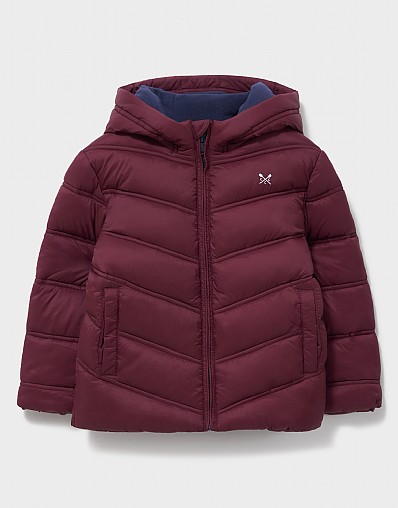 Cosy Midweight Chevron Puffer Jacket in Burgundy