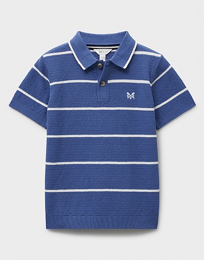 Piqué Stripe Knitted Cotton Polo Shirt in Blue