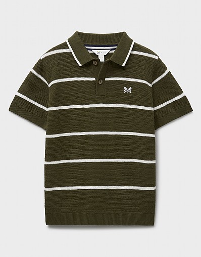 Piqué Stripe Knitted Cotton Polo Shirt in Olive Green