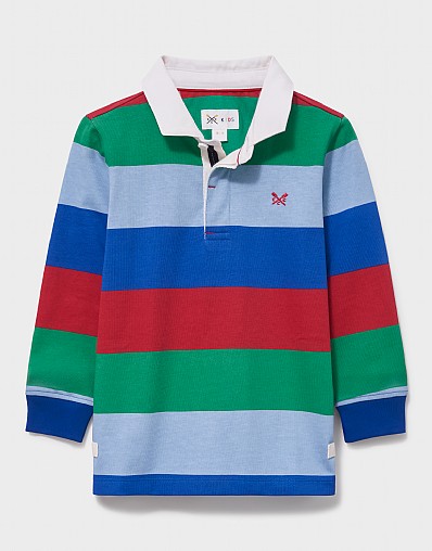 Cotton Long-Sleeve Rugby Shirt in Blue, Green & Red Stripe