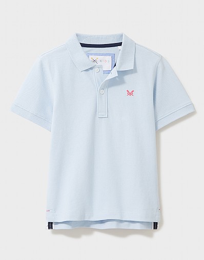 A cotton piqué polo in sky blue. Just like our grown-up version, this iconic style has a sporty ribbed collar and our crossed oars embroidered on the chest. Pair with cargo shorts for a look that will take them everywhere from rock pooling to tree climbing.