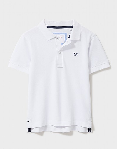 A cotton piqué polo in white. Just like our grown-up version, this iconic style has a sporty ribbed collar and our crossed oars embroidered on the chest. Pair with cargo shorts for a look that will take them everywhere from rock pooling to tree climbing.