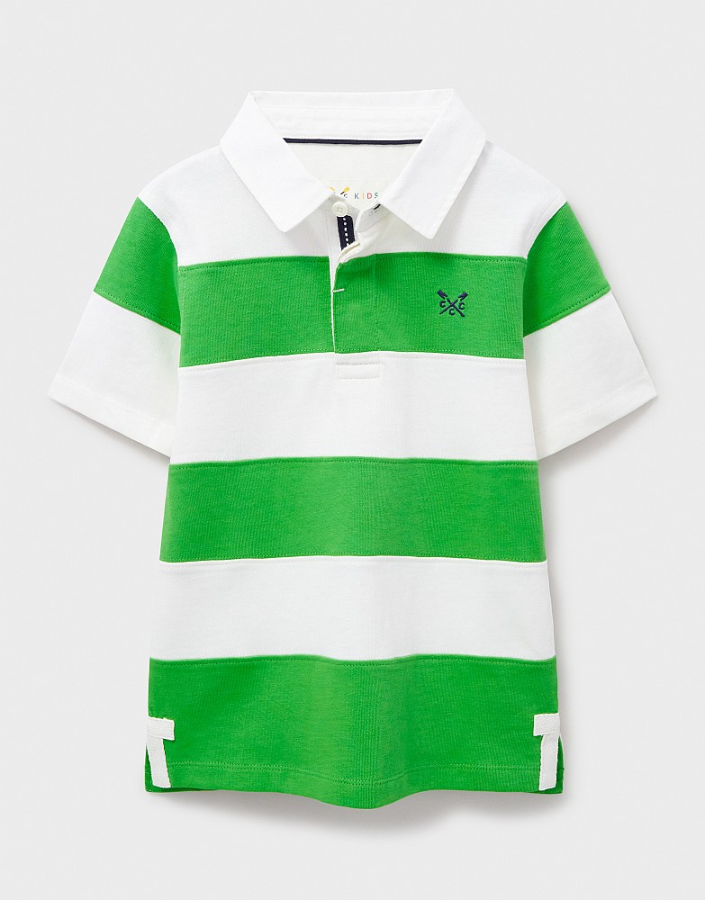 Short Sleeve Stripe Rugby Shirt in Green and White