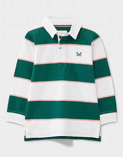 Long Sleeve Striped Rugby Shirt in White and Green Stripes