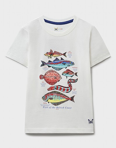 Short Sleeve Graphic T-Shirt in White Fish Print