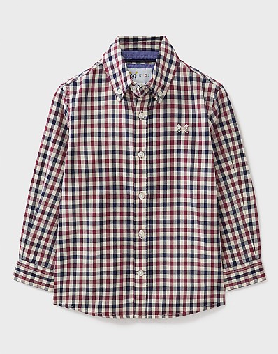 Long Sleeve Tattersal Twill Check Shirt in Navy and Red