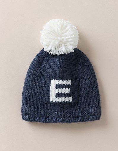 A knitted alphabet hat. With a statement letter 'E' on the front and a soft, fluffy bobble on the top, this hat is cosy and stylish. It’s the ideal finishing touch to any ensemble. Choose from the letters below.