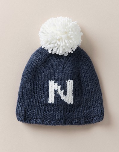 A knitted alphabet hat. With a statement letter 'N' on the front and a soft, fluffy bobble on the top, this hat is cosy and stylish. It’s the ideal finishing touch to any ensemble. Choose from the letters below.
