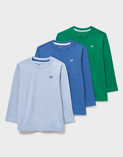 3-Pack Cotton Long-Sleeve Tees in Blue & Green