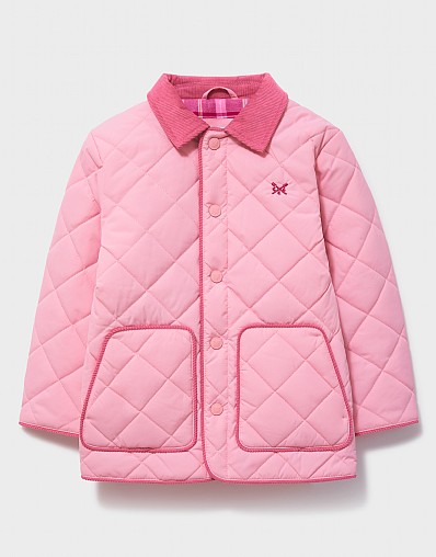 Cord-Collar Diamond-Quilt Jacket in Light Pink