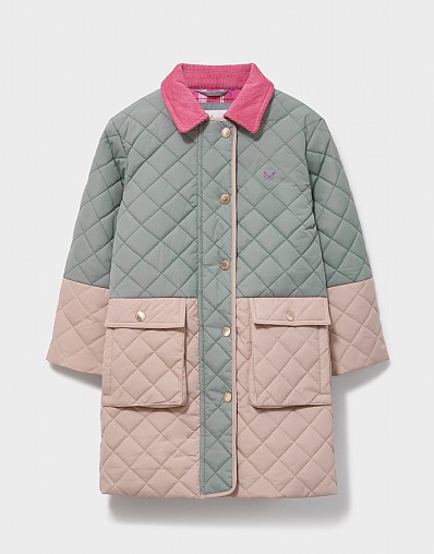 Hooded Diamond-Quilt Coat in Light Green