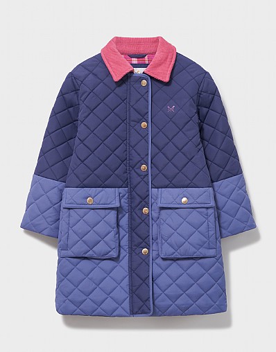 Hooded Diamond-Quilt Coat in Cobalt & Mid-Blue