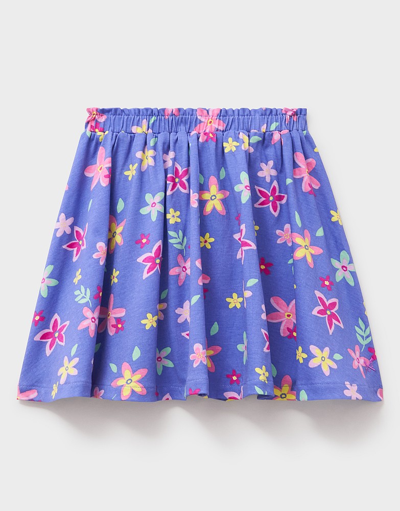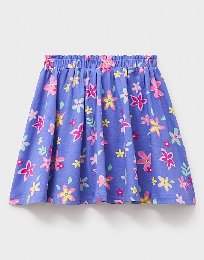 A cotton skirt in blue, with our charming barge floral pattern. Made with little ones’ comfort in mind, it’s cut from soft, stretchy jersey and designed with a gently elasticated waistband for dressing made simple.