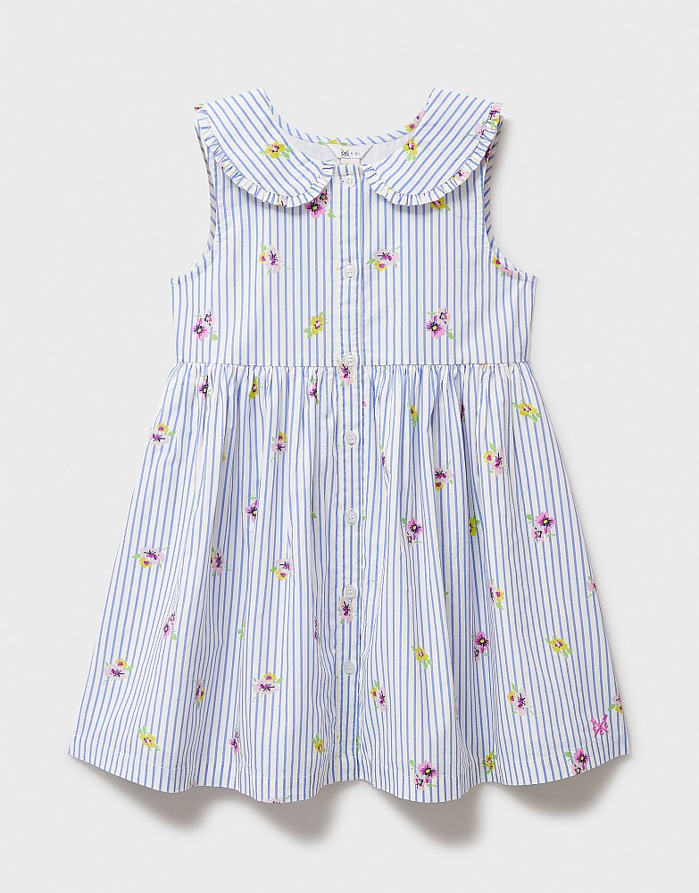Floral Cotton Stripe Sleeveless Dress in Blue & White