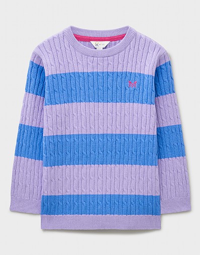 Heritage Cable Crew-Neck Jumper in Lilac & Blue Stripe