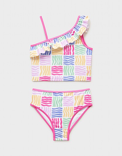 Asymmetric Frill Tankini in Rainbow Print