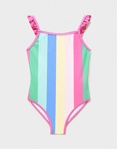 Frill Swimsuit in Rainbow Stripe Print