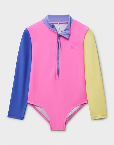 Colour Block Half Zip Long Sleeve Swimsuit