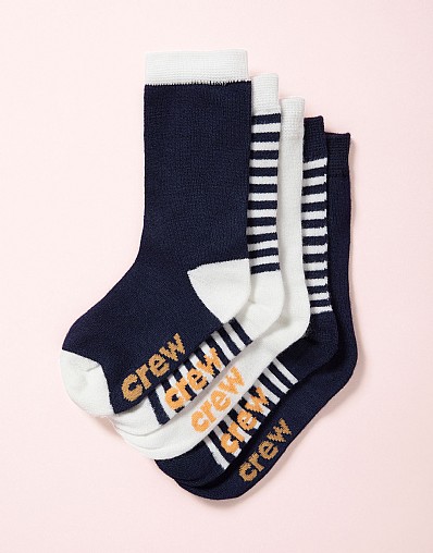 Ready, set, go! This five pack of navy and white striped trainer socks are perfect for running, jumping and cartwheeling. They’re crafted from a supersoft bamboo blend, designed to keep feet fresh. Stock up.