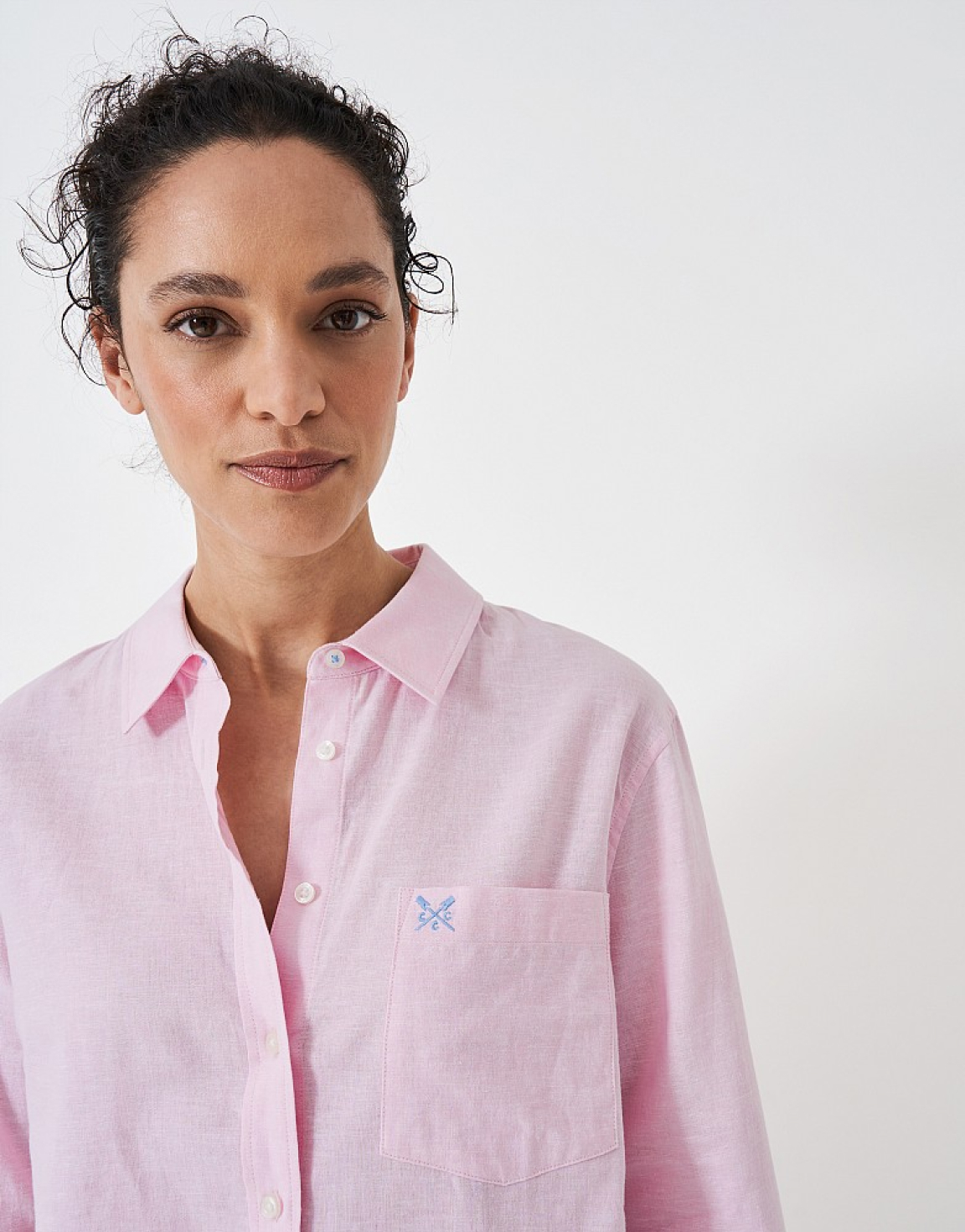 Meet the perfect summer companion to denim shorts, skirts, and trousers – our linen blend shirts for her. Keep cool in shirts for her that are effortlessly easy to wear. From plain styles to stripes in various colours all with relaxed fits that can be worn out or tucked in (or even worn as a swimsuit cover-up). You'll find yourself reaching for one of these shirts for every occasion.