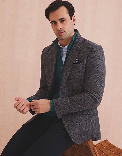 Prince of Wales Wool Blend Blazer in Navy