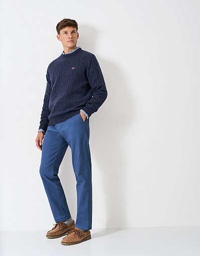 Lambswool Cable Crew Neck Jumper in Navy Marl