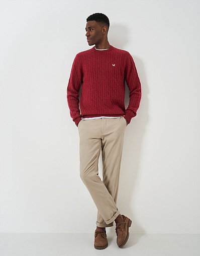 Lambswool Cable Knit Crew Neck Jumper in Red