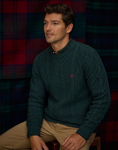 Recycled Cotton Cable Crew Neck Jumper in Forest Green