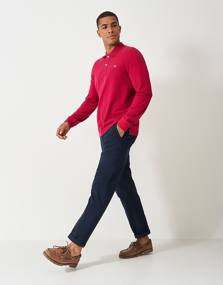 Long Sleeve Pique Polo Shirt in Washed Cherry