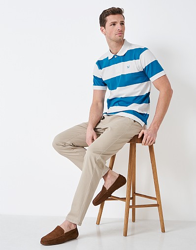 Our Waverney stripe polo in blue stripe. Cut from cotton piqué with the traditional Crew finishes you know and love. This one is washed to give it a lived-in, relaxed look.