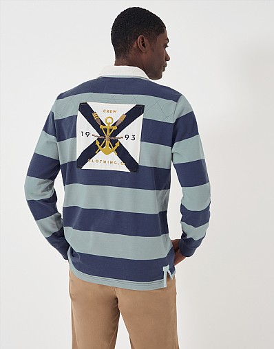 Introducing the Callington Rugby shirt in a blue and grey stripe. This match-ready style takes notes from our heritage, with branded applique on the chest and a embroidered patch on the reverse that call back to the coast. Wear with jeans from pitch to pub and beyond.