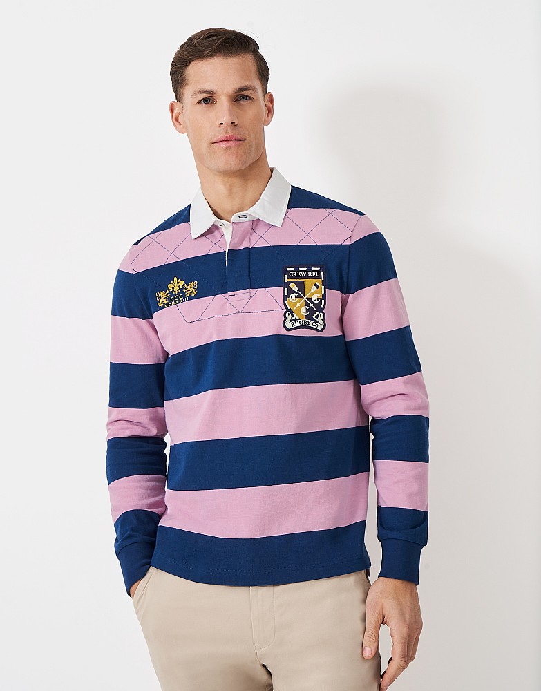 Patched Rugby Shirt in Pink and Blue Stripe
