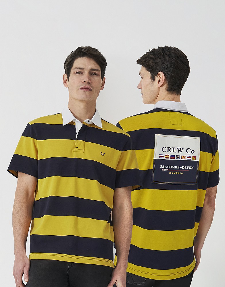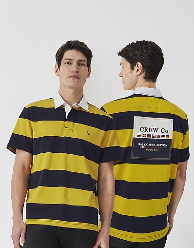 Stripe Short Sleeve Rugby Shirt in Gold and Navy
