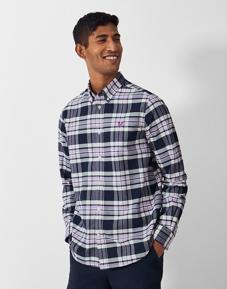 Check Long-Sleeve Oxford Shirt in Navy & Mauve