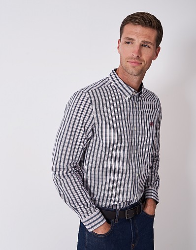 Classic Fit Check Poplin Shirt in White & Navy