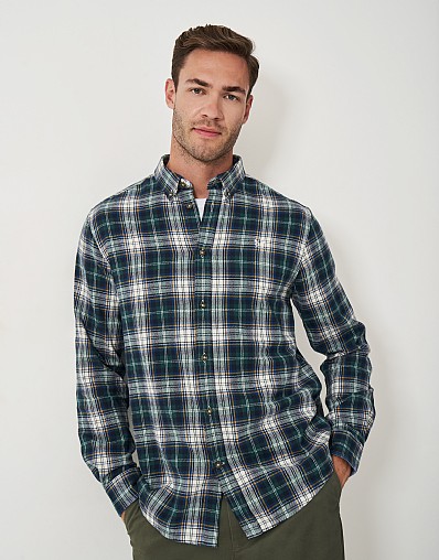 Cotton Flannel Shirt in Navy and Green Check