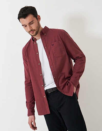 A classic fit shirt in burgundy. Garment dyed, cut from 100% cotton and finished with an Oxford button down collar, this shirt is a true wardrobe staple. We've added our embroidered crossed oars on the chest pocket as the perfect finishing touch. Wear alone with jeans or chinos, it's super versatile.