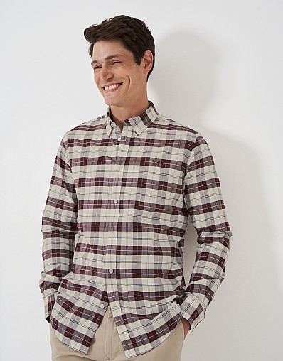 Long Sleeve Hurst Check Oxford Shirt in Burgundy Check