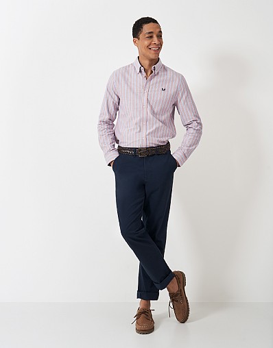 Long-Sleeve Slim-Fit Oxford Shirt in Rose Stripe