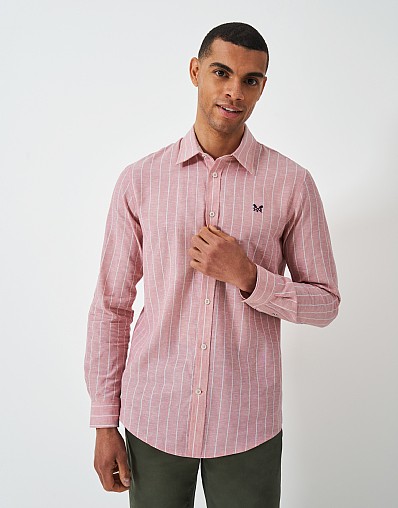 Long-Sleeve Linen Blend Shirt in Pink and White Stripes