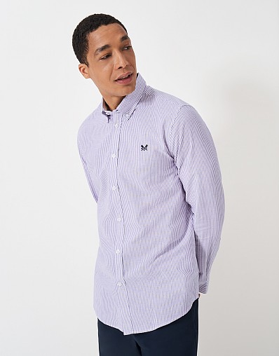 Long-Sleeve Slim-Fit Oxford Shirt in Violet Stripe