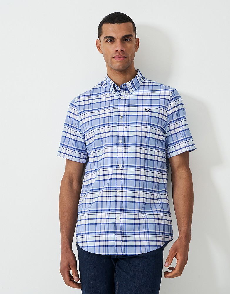 Short Sleeve Cotton Oxford Check Shirt in Blue and White